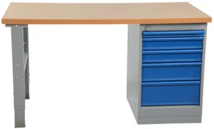 Dostarczane w komplecie z kozłem i szufladą (nr art 74350) z 5 szufladami 1x50, 2x100, 1x150 i 1x200 mm i panel bazowy. Pojemność na szufladę - 40 kg. Kolor stołu RAL Gray 7038 / Blue 5005.