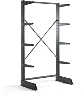 Regał wspornikowy na długie, lekkie przedmioty. Można rozbudować przy pomocy modułów dodatkowych. Półki dostępne jako akcesoria. Oszczędzający miejsce, trwały i elastyczny regał wspornikowy do przechowywania długich przedmiotów, takich jak rury z tworzywa sztucznego, drewniane ramy, profile stalowe itp.