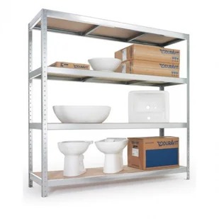 regały półkowe z bardzo szerokimi półkami z płyty wiórowej 2 i 2,5 m konstrukcja z ocynkowanych profili odpowienie przede wszystkim do przechowywania pudeł i dużych przedmiotów w sklepach i magazynach półki z surowej płyty wiórowej grubości 19 mm półki osadzone na ocynkowanym obwodzie regału z przedłużonymi usztywnieniami możliwość regulacji wysokości półek w odstępach co 50 mm regał dostarczany z 4 półkami z płyty wiórowej możliwość dokupienia dodatkowych półek regały są wtykowe, łatwo sie montują