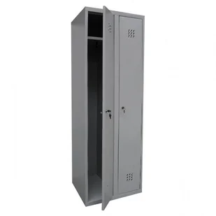 Metalowa szafa na ubrania w uniwersalnym szarym kolorze to praktyczne wyposażenie przebieralni w klubach fitness pływalniach siłowniach jak i pomieszczeniach socjalnych czy magazynach. Przeznaczona do przechowywania odzieży jest wyposażona w 2 półki i haczyk dzięki którym przechowasz więcej odzieży a kurtka lub płaszcz nie będą wygniecione. Każda komora zamykana jest na klucz co stanowi zabezpieczenie przed kradzieżą. Metal został pokryty farbą proszkową dlatego jest odporny na uszkodzenia i zarysowania.