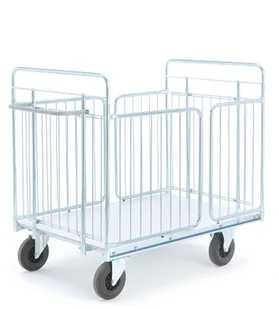Ramę wykonano z ocynkowanych rur stalowych i wyposażono w platformę z laminatu. Uchwyt lakierowany proszkowo. Dzięki wysokim ścianom ładunek jest bezpiecznie transportowany. Wózek porusza się płynnie dzięki dwóm stałym i dwó płynnym kołom z pełnej gumy.