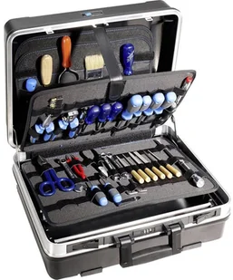 Walizka narzędziowa z wytrzymałego materiału ABS Solidna aluminiowa rama z zabezpieczeniem kantów chroni narzędzia i walizkę. 2 zamki oraz zamek cyfrowy B&W PROFIcode zapewniają bezpieczeństwo. 4 dodatkowe nóżki zapewnią, że pokrywa się nie porysuje a walizka lepiej stoi. Trwały, wygodny uchwyt zapewnia komfort noszenia walizki. Dolna pokrywa regulowana nowymi aluminiowymi przegródkami (2 aluminiowe przegródki, 4 końcówki, 2 przekładki). Flex loops posiada wyciąganą tackę narzędziową w pokrywie z elastycznymi uchwytami z przodu i z tyłu i wyciąganą wkładka na dno z elastycznymi uchwytami.