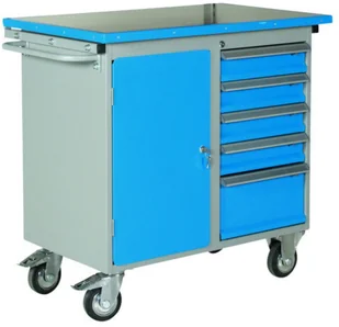 60 cmwysokość: 90 cmBLAT ROBOCZY WYKONANY Z PŁYTY WINYLOWEJ LUB DĘBOWEJ. Mobilny wózek - szafka na narzędzia z szufladami. Wyposażona w 4 kółka, z których 2 są blokowane. Wymiary konstrukcji: