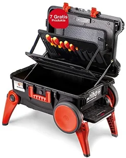 Walizka narzędziowa wyposażona | częściowo wyposażona - w wytrzymałej, pyłoszczelnej i wodoodpornej (IP67) walizce ochronnej z zaworem wyrównującym ciśnienie - możliwość sztaplowania, przetaczania - ze zintegrowanym podwoziem - zintegrowane amortyzatory gazowe utrzymują pokrywę w żądanej pozycji nawet po wyposażeniu - rozkładane nóżki do podniesionej pozycji zdejmowania i stabilny, antypoślizgowy stopień do pracy na wysokości - duże kółka do wygodnego przetaczania po schodach i nierównym terenie - wycięcie w kształcie litery V w pokrywie jako pomoc przy piłowaniu Dalsze informacje techniczne: