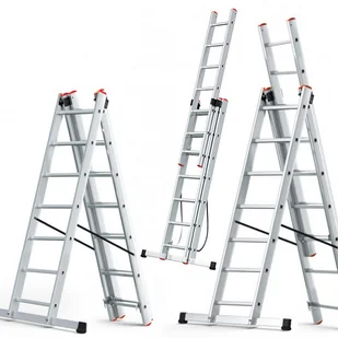 Drabina aluminiowa wielofunkcyjna 3x6 PRO na schody + torba i hak GRATIS | Producent: HIGHER / DRABEST • Długość transportowa » 1,68m • Długość maksymalna » 3,45m • Maksymalny zasięg roboczy » 4,43m • Udźwig » 150kg • Super uniwersalna » 5 różnych ustawień w 1 drabinie! • Dodatkowo gratisy » HAK + TORBA • Kompatybilna » z akcesoriami do drabin HIGHER • Wyposażona w » super adaptację na schody Drabiny uniwersalne PRO firmy HIGHER to linia profesjonalnych i certyfikowanych drabin o najwyższych parametrach jakości i wytrzymałości. Drabiny te, z uwagi na swoją wzmocnioną konstrukcję opartą na szerokich profilach aluminiowych, nadają się do zastosowań profesjonalnych. Dodatkowym atutem drabin PRO jest adaptacja na schody zwiększająca zakres możliwości użycia drabin – praktycznie w każdych warunkach. Dlaczego wybrać drabinę 3x6 PRO HIGHER? • Drabiny 3x6 PRO HIGHER mają mocną i profesjonalną konstrukcję – dlaczego to takie ważne? Dzięki zastosowaniu odpowiednich materiałów o zwiększonej wytrzymałości i sztywności drabina będzie bardziej bezpieczna i wygodna w użytkowaniu, a poza tym wytrzyma znacznie dłużej od innych, podobnych drabin. • Drabiny 3x6 PRO HIGHER mogą pracować aż w 7 różnych ustawieniach – to zdecydowanie najlepsza drabina na rynku dająca najwięcej możliwości pracy. Dzięki rozwiązaniom technicznym jest najbardziej uniwersalną drabiną na rynku. • Dodatkowa adaptacja na schody, czyli możliwość wyjęcia najwęższego elementu i stosowania go jako niwelatora wysokości. Takie rozwiązanie czyni drabiny HIGHER bardzo uniwersalne w zastosowaniu praktycznie na każdej powierzchni roboczej. • Kompatybilność z najlepszymi akcesoriami do drabin HIGHER, które w istotny sposób podnoszą wygodę i bezpieczeństwo stosowania drabin na co dzień (akcesoria do kupienia na naszych pozostałych ofertach). Czy wiesz, że dzięki drabinie 3x6 PRO HIGHER... • Dosięgniesz znacznie wyżej niż z większości drabin 3x6, bowiem dzięki mocnej i solidnej konstrukcji drabina ta posiada imponujące zasięgi robocze przy zachowaniu bardzo wysokiej sztywności i wytrzymałości. • Wykonasz także prace na schodach czy na nierównym terenie, dzięki adaptacji na schody, w którą wyposażona jest drabina. • Będziesz miał spokój na minimum 10 lat, dzięki przedłużonej gwarancji, a później pełne wsparcie pogwarancyjne firmy HIGHER. • Będziesz mógł używać jednych z wielu pasujących akcesoriów do drabin HIGHER, które z pewnością podniosą funkcjonalność drabiny, bezpieczeństwo i komfort użytkowania. • Zachowasz większe bezpieczeństwo – dzięki specjalnej torbie na narzędzia zapinanej na szczeble (zachowasz dwie ręce wolne dla mocnego uchwytu) oraz haka na wiadro zapinanego na szczeblu drabiny. • Będziesz miał pewność, że gdy będziesz potrzebował jakąkolwiek część do swojej drabiny – my ją załatwimy dla Ciebie. • Wspierasz polski przemysł i dajesz miejsca pracy w Polsce, bowiem drabiny HIGHER powstają w 100% w Polsce. Najważniejsze cechy • Wyprodukowana w Polsce – dostęp do wszystkich komponentów drabiny. • Maksymalne obciążenie – 150 kg / szczebel. • Spełnia normę EN-131 potwierdzone informacją na etykiecie drabiny. • Nadaje się do użytku profesjonalnego i domowego. • Wzmocniona i bardzo sztywna konstrukcja. • Wykonana z aluminium (lekka i praktyczna). • Posiada dopuszczenia do używania w zakładach pracy, firmach, przemyśle. • Wielofunkcyjne zastosowanie: możliwość stosowania jako drabina przystawna, rozstawna, wolnostojąca oraz drabina na schody. Bezpieczeństwo Z aktualnie obowiązujących przepisów BHP wynika, że norma rozdziela drabiny na te do użytku domowego jak i profesjonalnego (używane m.in. w zakładach pracy). Drabina 3x6 PRO HIGHER to drabina przeznaczona: • do użytku profesjonalnego – zakłady pracy (PRO) • do użytku nieprofesjonalnego – gospodarstwa domowe (BASIC) Potwierdzeniem spełniania normy EN-131 oraz odpowiedniego przeznaczenia drabiny jest specjalne oznaczenie na etykiecie drabiny. Zastosowane specjalne oznaczenie drabiny potwierdza fakt spełniania przez nią normy EN-131 oraz możliwość stosowania drabiny dla użytkowników domowych, jak i użytkowników profesjonalnych.