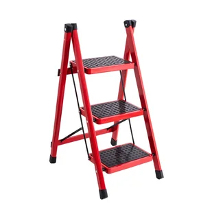 Ochrona podłogi – nóżki są wyposażone w specjalne stopki z tworzywa, które zapobiegają rysowaniu parkietu, paneli czy płytek. Stylowy, czerwony design – łatwo ją zauważyć (co zwiększa bezpieczeństwo) i rewelacyjnie wygląda. Nie musisz jej chować do piwnicy! Gdzie się sprawdzi? To drabina do zadań specjalnych i codziennych: W kuchni i salonie: sięganie do wysokich szafek kuchennych, pawlaczy, zmiana żarówek czy wieszanie firanek.