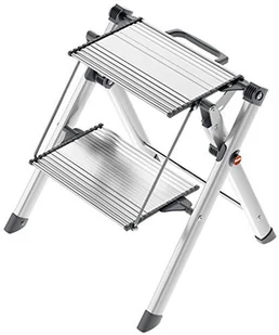 Ta drabinka-podest Mini Comfort firmy Hailo znacznie ułatwia wykonywanie napraw i sprzątanie w domu, ogrodzie lub warsztacie. Ta mała i kompaktowa drabina posiada 2 duże stopnie z antypoślizgową powierzchnią i mieści się w każdym rogu. Antypoślizgowe, plastikowe nóżki zapewniają stabilność na różnych powierzchniach, takich jak parkiet, dywan i płytki. Drabina składa się do zaledwie 6,5 cm grubości, co ułatwia przechowywanie, gdy nie jest używana. Jest również bardzo wygodna do przenoszenia dzięki praktycznemu uchwytowi, który steruje również mechanizmem składania.