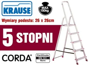 Aluminiowe drabiny domowe KRAUSE z serii CORDA to idealna propozycja dla domu i ogrodu, rozwiązanie dla każdej Pani domu - nieodłączny element świątecznych porządków, mycie okien czy wieszanie firanek stanie się proste i przede wszystkim bezpieczne. Fakt iż drabina posiada certyfikat (zgodność z normą EN-131 ) oraz spełnia wszelkie wymogi bezpieczeństwa oznacza, że można ją również używać w firmach i miejscach pracy.