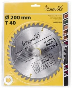 Piła tarczowa do drewna CON-TCT-2004 Condor, o średnicy 200 mm. Ilość zębów: 40 z węglikiem spiekanym. Tarcza przeznaczona do cięcia drewna zarówno twardego, jak i miękkiego, płyt gipsowych, wiórowych czy materiałów izolacyjnych. Zapewnia szybkie cięcie drewna.