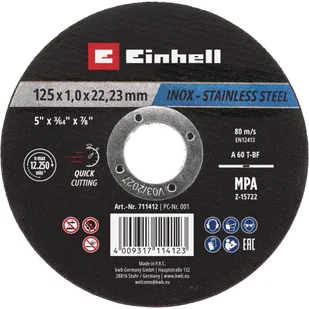 Zestaw tarcz do metalu 125 x 1,0 mm, marki Einhell Zestaw uniwersalnych cienkich tarcz tnących, idealnych do cięcia stali nierdzewnej, stali, rur stalowych, profili i blachy. Tarcze umożliwiają precyzyjne cięcia bez zadziorów przy minimalnej grubości materiału. Charakteryzują się doskonałą wydajnością cięcia i długą żywotnością.