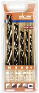 Alpen Zestaw wierteł krętych do drewna 600114100 Średnica wiercenia 4 mm 5 mm 6 mm 8 mm 10 mm HSS Uchwyt prosty 5 szt