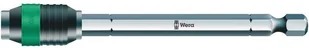 Uchwyt uniwersalny Rapidaptor do grotów sześciokątnych 1/4" wg DIN ISO 1173-C 6,3 oraz końcówek E 6,3 (ISO 1173). Możliwość zamocowania grotu lub końcówki bez konieczności przesuwania pierścienia przytrzymującego. Wymiana grotu lub końcówki następuje poprzez przesunięcie pierścienia przytrzymującego do przodu, co pozwala na szybką obsługę jedną ręką. Magnes stały zapewniający niezawodne przytrzymanie narzędzia. Chwyt sześciokątny 1/4", do wkrętarek z uchwytem wg DIN ISO 1173-F 6,3.