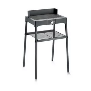 Grill elektryczny stołowy Barbecue PG 8561, Severin Proste, elektryczne grillowanie wewnątrz i na zewnątrz domu na grillu stołowym PG 8561. Mając ten grill niezależnie od pory roku możesz w dowolnym momencie szybko przyrządzić smaczne potrawy! Dzięki ciągłej spirali grzewczej, grill stołowy zapewnia równomierny rozkład ciepła, a wypełniona wodą misa grillowa ogranicza wytwarzanie dymu i zapachu pieczenia, co powoduje, że urządzenie można stosować zarówno wewnątrz jak i na zewnątrz domu. Stojak z półką. Urządzenie nadaje się idealnie do użycia jako grill stołowy jak i wolnostojący. Za pomocą stojaka z półką można łatwo przekształcić grill ze stołowego na wolno stojący, który można używać na balkonie lub w ogrodzie.