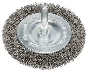 Szczotka talerzowa - drut falowany. Idealnie nadaje się do usuwania kolorowego nalotu na spawach, na stali szlachetnej. o lekkich i średniociężkich prac związanych z czyszczeniem małych powierzchni metalowych, rowków lub krawędzi ze stali szlachetnej, aluminium lub metali kolorowych, jak np. usuwanie korozji, bruzdkowanie, matowanie, usuwanie lakieru, strukturowanie. 70 mm, 0,3 mm, 10 mm.