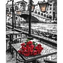 Malowanie po numerach - Róże na stoliku. Zestaw Niki4 do malowania po numerach zawiera: Podobrazie bawełniane ze szkicem obrazu o wymiarach: 40x50 cm 24 kolory farb akrylowych w ponumerowanych pojemnikach 3 pędzle nylonowe o różnej grubości Haczyki i śrubki do zawieszenia obrazu na ścianie Schemat. . .