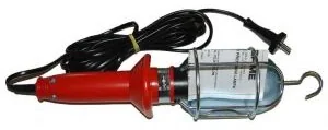 Lampa do zastosowań warsztatowych z haczykiem oraz osłoną żarówki.