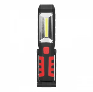 Poręczna, latarka warsztatowa z wbudowanym akumulatorem 2800mAh została zaprojektowana z myślą o zastosowaniu profesjonalnym, jak i do użytku domowego. Wyposażona jest w dwie nowoczesne diody LED (przednia LED COB - 3W oraz górna - 1W ). Latarka wykonana została z wytrzymałego i odpornego na uszkodzenia tworzywa sztucznego. Umieszczony z przodu obudowy wyłącznik pozwala na wygodne włączenie/wyłączenie lub przełączenie na diodę umieszczoną na górze latarki. Ponadto, latarka posiada czerwone światło awaryjne, ruchomą stopkę z mocnym magnesem oraz hak, dzięki któremu możesz latarkę zawiesić w dowolnym miejscu i zwolnić swoje ręce.