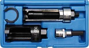 odpowiedni do montażu i demontażu zatartych wtryskiwaczy common railnadaje się np. do silników Mercedes CDI 611, 612 i 613nadaje się do pracy w ograniczonych przestrzeniach dzięki małej średnicy cylindra podpierającego. wtryskiwacz można wyciągnąć z dużą siłą za pomocą wrzeciona ciągnącego i cylindra podpierającego1 x wkład wtryskiwacza, gniazdo kwadratowe napędu 12,5 mm (1/2"), gniazdo sześciokątne wyjścia 10 mm1 x pierścień ochronny do montażu pod tuleją wyciągającą1 x klucz nasadowy SW 29 mm, otwór gniazda: 50 mm, zewnętrzny napęd sześciokątny: SW 22 mm1 x wrzeciono ściągające / tuleja ściągająca, napęd zewnętrzny sześciokątny:
