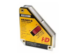 Kątownik magnetyczny StrongHand Adjust-O™ o udźwigu do 75 kg z włącznikiem służy do łatwego i szybkiego przytrzymywania elementów w jednej płaszczyźnie lub pod kątem 45° i 90°. Wyłącz magnes (OFF) lub ustaw przełącznik w środkowej pozycji podczas ustawiania części. Włącz go (ON), gdy jesteś gotów do pracy. Idealny do okrągłych i kwadratowych rurek, narożników i powierzchni płaskich. Używać do sczepiania i zdejmować przed właściwym spawaniem.