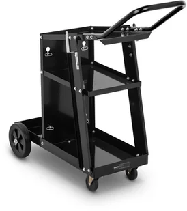 Wózek spawalniczy sprawdzi się do przechowywania sprzętów i narzędzi w branży spawalniczej oraz do ich wygodnego transportu. Wózek posiada 3 półki, jego maksymalna nośność wynosi 80 kg. Posiada także specjalną półkę na butlę z gazem oraz dwa metalowe łańcuchy do utrzymania jej w odpowiedniej pozycji. Po obu stronach umieszczone są uchwyty na przewody. 4 kółka zapewniają wózkowi mobilność. Para tylnych kółek o średnicy 190 mm jest wsparciem dla konstrukcji wózka, kółka przednie są mniejsze i skrętne (360 stopni). Wygodna rączka zapewnia sterowność. Konstrukcja sprzętu wykonana została z odpornej, pomalowanej na czarno stali.