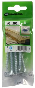 Wkręt 6 x 60 mm 6 szt. STANDERS to uniwersalny łącznik pozwalający na pracę w różnych materiałach jak drewno, tworzywa sztuczne, płyty meblowe i budowlane, a także montaż okuć i akcesoriów meblowych oraz innych elementów konstrukcyjnych. Do poprawnego działania łącznika niezbędne jest odpowiednie narzędzie (wkrętak płaski, krzyżakowy PH, PZ lub Torx). Rodzaj i rozmiar narzędzia wskazano na opakowaniu.