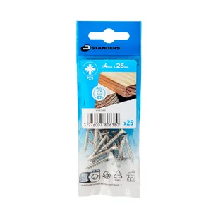 Wkręty Standers to niezawodne mocowanie dla różnych konstrukcji drewnianych. Wykonane ze stali nierdzewnej, gwarantują wysoką odporność na korozję, co sprawia, że doskonale nadają się zarówno do zastosowań wewnętrznych, jak i zewnętrznych. Płaski, stożkowy łeb pozwala na estetyczne zagłębienie w materiale, zapewniając gładką powierzchnię montażu. Dzięki systemowi Pozidriv (PZ) wkręty oferują pewny chwyt i lepszą kontrolę podczas wkręcania, co minimalizuje ryzyko ześlizgiwania się wkrętaka. Średnica 4 mm i długość 25 mm czynią je idealnym wyborem do solidniejszych połączeń, takich jak montaż desek, paneli czy elementów konstrukcyjnych.