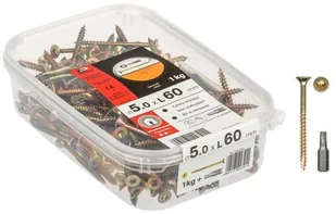 Wkręty do drewna. Rowek frezowany w dolnej części gwintu umożliwia wkręcanie bez wstępnego nawiercania, ogranicza pojawienie się pęknięć. Gniazdo torx zapobiega wyskakiwaniu bitu i lepsze przeniesienie siły wkręcającej, dzięki czemu wkręt wkręca się pewnie.