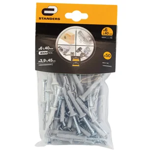 Kołek do szybkiego montażu 6 x 40 mm 50 szt. Standers pozwala na ekspresowe mocowanie różnego rodzaju elementów, zarówno dekoracyjnych, wykończeniowych jak i konstrukcyjnych. Stosowanie jest banalnie proste - wystarczy wbić kołek wraz z wkrętem w przygotowany wcześniej otwór montażowy w elemencie mocowanym oraz w podłożu. Poprawne i trwałe mocowanie za pomocą kołków szybkiego montażu jest możliwe tylko przy wykonaniu otworów zgodnie ze wskazaniami na opakowaniu (średnica i głębokość otworu, grubość mocowanego elementu) Szybki i łatwy montaż przelotowy redukuje czas montażu.
