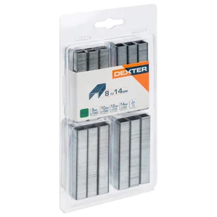 Zszywki Typ 140 mix 8 - 14 mm Dexter to galwanizowane zszywki wykonane z cienkiego drutu, dzięki temu są niemal niewidoczna po zamocowaniu. Z ich pomocą szybko można połączyć elementy tapicerskie lub zespolić materiał z drewnianą ramą mebli. Zszywki są uniwersalne, dlatego można je także wykorzystać do mocowania etykiet czy przygotowywania kartonów. Galwanizowane.