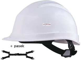 OPIS TECHNICZNY : Hełm budowlany z ABS i poliwęglanu. Więźba z poliamidu: 3 taśmy tekstylne z 8 punktami zamocowania.