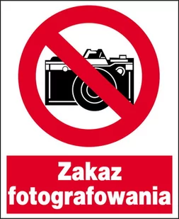 TABLICA OSTRZEGAWCZA WG PN-93/N-01256 seria ZNAKI ZAKAZU OCHRONY I HIGIENY PRACY Znak bhp ZZO-11 Zakaz fotografowania rozmiar w cm 22. 5x 27. 5 tablice z mocnego PCV koloru BIAŁEGO, grafika wykonana metodą sitodruku - format znaku L w rozmiarze 225x275 - wykonany z trwałej płyty PCV