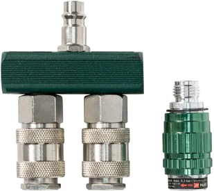 Opis produktu rozdzielacz 2-drożny do sprężonego powietrza: z regulatorem powietrza rozdzielacz 4-drożny do sprężonego powietrza zestaw przyłączy do sprężonego powietrza: 2 przyłącza przegubowe do sprężonego powietrza, 3 złączki