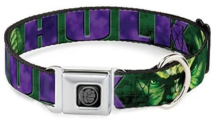 Buckle-Down Obroża dla psa pas bezpieczeństwa klamra Hulk twarz zbliżenie akcja poza zielonymi fioletami 28 cm do 43 cm szerokości 2 cm DC-SB-HUK-WHU008-1.0-M