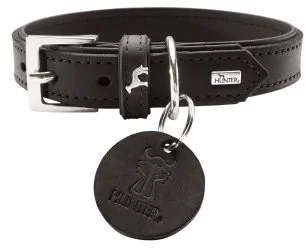 HUNTER LARVIK obroża dla psa, skóra, prosta, elegancka, wygodna, 50 (S-M), czarna