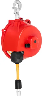 Obudowa odciążnika jest wykonana z trwałej i wytrzymałej stali, która z łatwością znosi intensywne użytkowanie. Solidny wąż poliestrowy bezpiecznie podtrzymuje narzędzie pneumatyczne podczas montażu i innych prac. Jednocześnie sprzęt jest zasilany sprężonym powietrzem o ciśnieniu roboczym 10 bar (maks. ciśnienie to 60 bar). Balanser do sprężonego powietrza ma złącze R3/8", a do węża R1/4". Aby zapewnić bezpieczne korzystanie z odciążnika, musi być obsługiwany pionowo, co optymalnie zrównoważy ciężar.