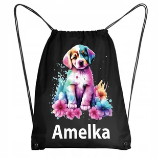 Czarny Worek Szkolny Na Buty Workoplecak Na WF Słodki Piesek Golden + IMIĘ