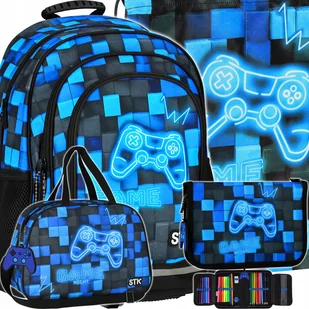 Plecak Szkolny Chłopca Piksele Niebieskie W Pady Piórnik Torba Worek Zestaw