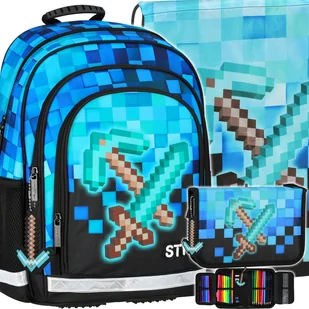 Plecak Szkolny Dla Chłopca Piksele Gra Pixel Blue Worek Piórnik Wyposażony