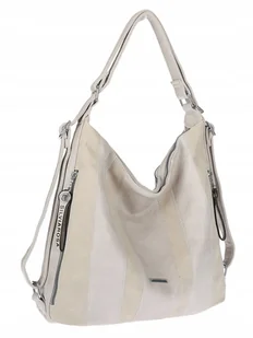 TOREBKA DAMSKA 3w1 – WOREK / LISTONOSZKA / PLECAK Najnowsza kolekcja włoskiej marki SILVIAROSA – styl, funkcjonalność i ponadczasowa elegancja Szukasz torebki, która dopasuje się do Twojego stylu życia? Ten model 3 w 1 to absolutny hit Może być klasycznym workiem, wygodną listonoszką lub eleganckim plecakiem. Jedna torebka – wiele możliwości. DESIGN, KTÓRY ZACHWYCA Torebka wykonana z wysokiej jakości skóry ekologicznej w dwóch fakturach: ✔ gładkiej ✔ delikatnie groszkowanej Na przodzie efektowne zszywane pasy – naprzemiennie skóra gładka i groszkowana – tworzą unikalny, luksusowy wygląd. Całość dopełnia logo marki na froncie oraz suwaki z ozdobnymi troczkami z logo.
