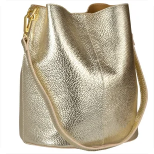 VEZZE Torebka ze skóry naturalnej worek złota metalik Indeks: 3030 Proponujemy Paniom najnowszy wzór - torebkę skórzaną typu worek złoty metaliczny VEZZE - p...
