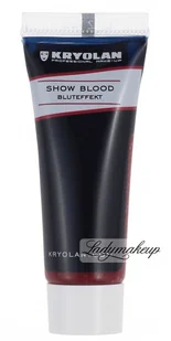 SHOW BLOOD marki KRYOLAN (wiodącej na całym świecie profesjonalnej marki oferującej wysokiej jakości kosmetyki charakteryzatorskie, kolorowe i pielęgnacyjne). Sztuczna krew w formie żelu. Doskonale sprawdza się podczas balu przebierańców i Halloween, jak również planie filmowym, deskach teatru lub w TV. Produkt jest spieralny praktycznie ze wszystkich tkanin. Nie tworzy plam na skórze (po zmyciu).