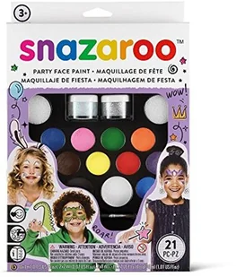 Snazaroo Snazaroo Farby do makijażu na imprezę, paleta do makijażu z 2 pędzlami, 4 gąbkami i instrukcją (może nie być dostępna w języku polskim), 2 żele brokatowe, 12 kolorów