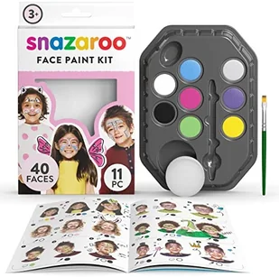 Zestaw farb do twarzy Snazaroo dla Dziewczynek. Kolory w zestawie : biały, srebrny, niebieski z połyskiem, różowy z połyskiem, turkusowy, pastelowy zielony i pastelowy żółty. Gąbka i pędzelek do nakładania farb. Zestaw zawiera instrukcję w postaci książeczki z wzorami do malowania twarzy. Farby są bezpieczne w użyciu, łatwe do nakładania i do zmycia wodą. Zawartość tego zestawu powinna wystarczyć do pomalowania 50 twarzy - informacja producenta.