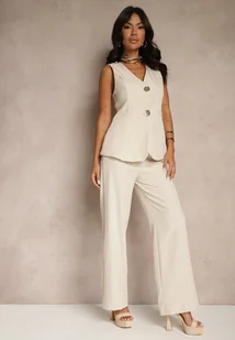 Beżowy Komplet Garniturowy Kamizelka z Ozdobnymi Guzikami i Spodnie Filuenna