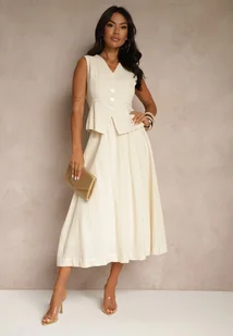 Beżowy Bawełniany Komplet Kamizelka i Rozkloszowana Spódnica Haleresa