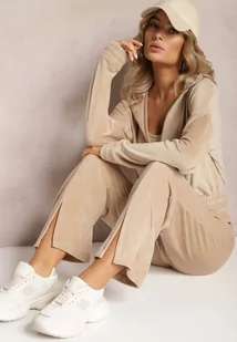 Beżowy 2-częściowy Komplet Dresowy z Bluzą i Spodniami Stellarina