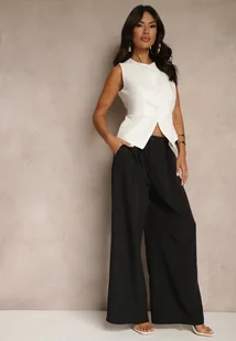Biało-Czarny Komplet Garniturowy Szerokie Spodnie i Kamizelka Ziorene