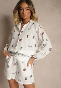 Biały Komplet z Wiskozą Koszula i Szorty z Motywem Morskim Reivienne