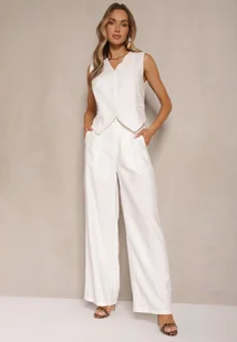 Biały Wiskozowy Komplet o Garniturowym Kroju Kamizelka i Spodnie Soreya