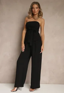Czarny Komplet Spodnie o Szerokim Kroju i Asymetryczna Bluzka Ralinessa